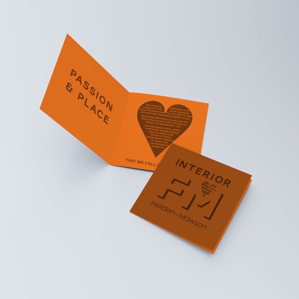 Feilden and Mawson are commercial architects with offices across the UK and Europe. Like many architecture businesses the scope of their projects often extends into designing the interior space as well as the exterior. The team at F&M wanted to create a brand that could stand independently, able to support the F&M projects but also able to work with other architects (individuals and groups) who don’t have a dedicated interiors team.